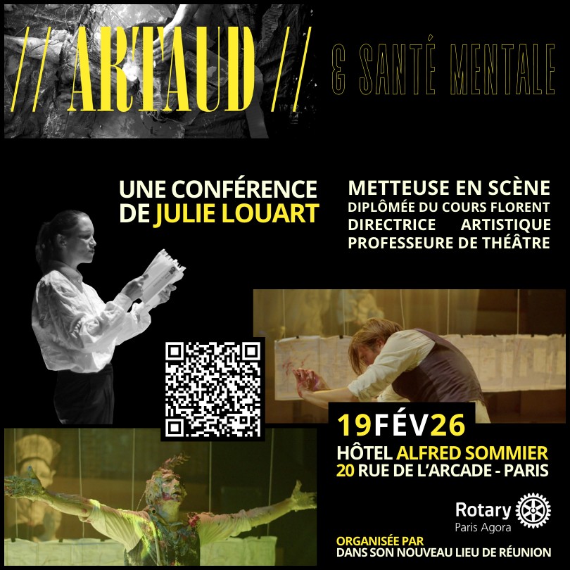 À la croisée de l’art, du théâtre et de la santé mentale, cette conférence propose une immersion dans l’univers incandescent d’Antonin Artaud, figure majeure du XXᵉ siècle, dont l’œuvre continue de questionner les frontières entre création, folie et société.