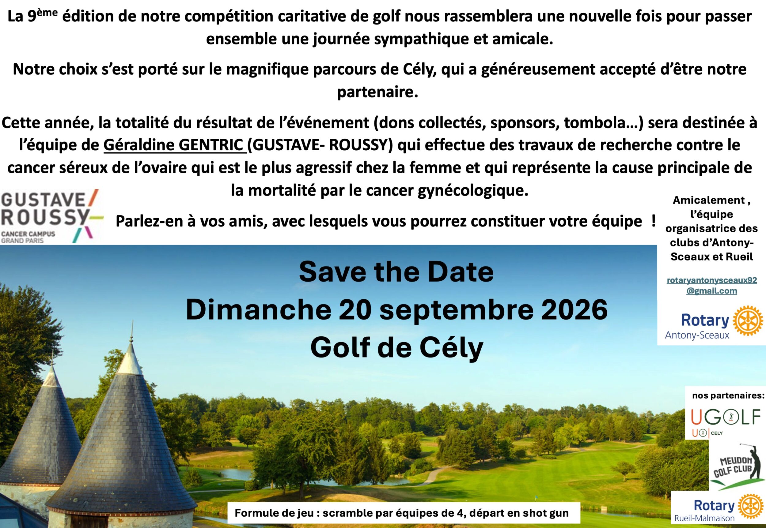 Publié leLe Rotary organise une compétition de golf caritative le samedi 25 avril 2026 au Golf Fleurie à Chatou, au profit de l’association les Renversés.Cette matinée sportive et conviviale se déroulera en scramble…