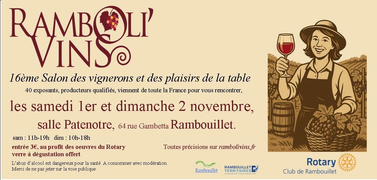 Les 1er et 2 novembre aura lieu salle Patenotre à Rambouillet la 16ème édition du salon des vignerons et des plaisirs de la table.